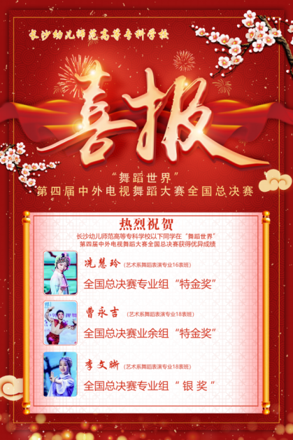 5月2日我校艺术系舞蹈表演专业冼慧玲(16表班)、曹永吉(18表班)🤾‍♂️、李文晰(18表班)三位同学在“舞蹈世界”第四届中外电视舞蹈大赛全国总决赛中分别荣获专业组“特金奖”,业余组“特金奖”,专业组“银奖”。此次赛事的指导老师为李剑、唐诗老师。