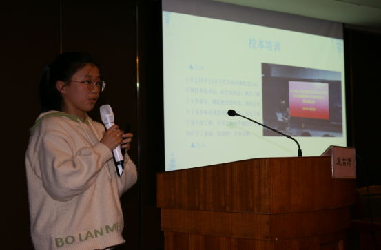 总结大会的第二部分是学生分享🥏。本阶段由2020级舞教1班陈佳佳同学主持。首先通过一段VCR生动有趣地向大家展示了见习生活。