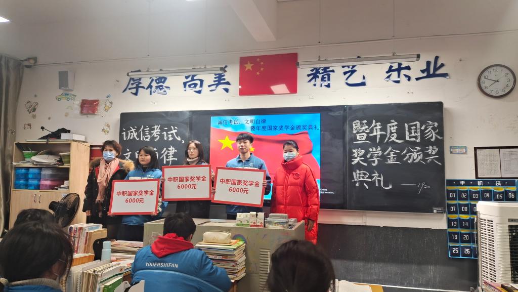 而后进行了2020年度中职国家奖学金的颁奖仪式,获得的学生分别为185班易朵儿,1920班罗雅婕,1813班左弈;希望全校各位同学们向标杆看齐,向优秀看齐。最后由系部戴申林老师进行了总结,他从考试安排以及国家奖学金的评定过程进行了解读,号召同学们向优秀学习,立鸿鹄之志,做奋斗青年。同时他还强调了疫情防控方面的具体事宜,要求同学们从即日起带好口罩,做好两案九制,不要出境或出省或前往中高风险区域探亲、游玩,要求同学们尽量不要到人多的地方去,最后做了离校的要求与安排。