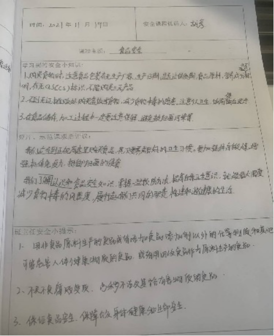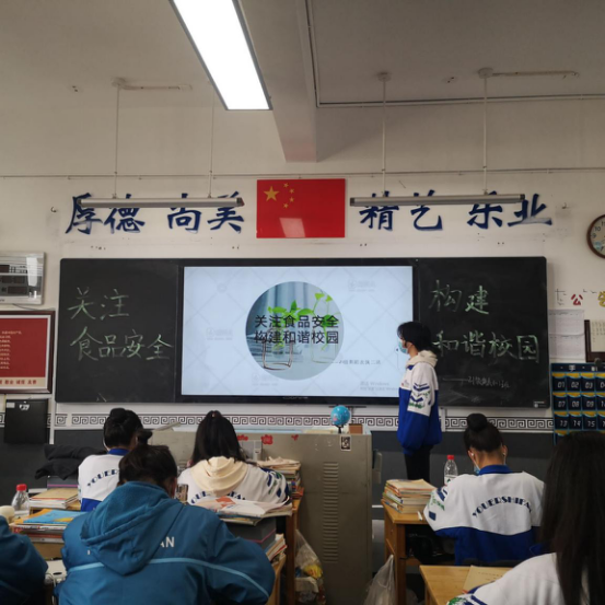 坚守课堂阵地,组织开展了“食品安全教育”主题班会。通过观看视频、你问我答等多种形式,让学生了解食物中毒的原因及三无产品、食品添加剂等有关知识,明白“食品安全问题就在我们身边。”班主任们还介绍了日常生活中一些鉴别伪劣食品的小窍门,针对学生在校园周边流动食品摊点上购买小吃的行为进行安全提醒,并教育学生带动亲人、朋友自觉抵制不健康、不卫生的食品。