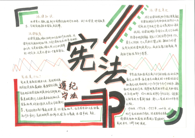 通过此次活动,青少年学生的宪法意识、国家意识、规则意识得到了很大的提高,切实的提升了宪法教育的针对性和实效性;同学们自主收集素材、资料,出版一副副精美的普法宣传板报,同学们在黑板上、手抄报上、海报上用生动的图、话表达自己对宪法的认识,表达在收集资料过程中感受到的宪法价值,班会课上,同学们大胆的说出了自己知道的有关青少年的法律法规的名称,老师们也纷纷参与进来,和学生们一起畅谈对宪法、法律的认识和理解,宪法真正走入广大学生的日常生活,让“每一天都是宪法日”。