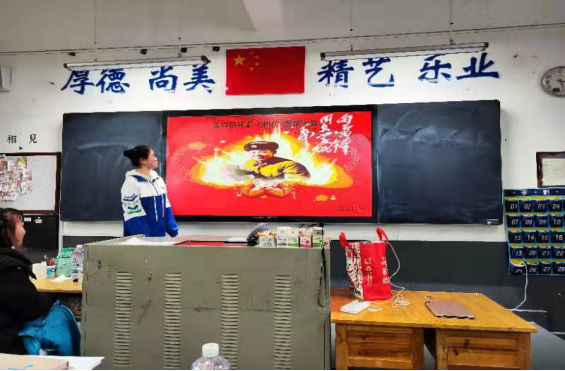 现在让我们一起走进各班正在进行的学雷锋精神主题班会,看他们是从那几个方面进行的。首先我们来到了18表班,他们主要是从认识雷锋、了解雷锋故事名言、学习雷锋精神含义以及在生活中怎么学习雷锋的精神四个方面展开了讨论。