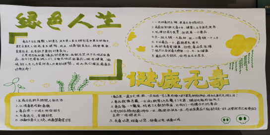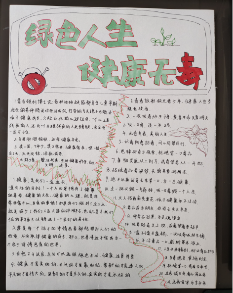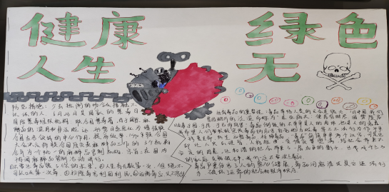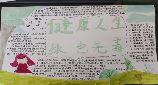为不断加强校园文化建设,丰富学生们的校园文化生话,营造浓厚的文化育人织氛围。培养学生动手、动脑能力,展示学生的风采,打造属于我们系部的校园文化特色。3月初,我校开展了一次以“健康人生绿色无毒”及“新学期新打算”为主题的手抄报评比活动。