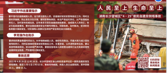 4月29日中午,长沙市望城区一栋违建民房倒塌,截至于5月6日,事故现场被困、失联人员已全部找到,其中10人获救,53人遇难。为深刻汲取教训,补齐漏洞短板,坚决维护广大师生生命安全,艺术系广泛开展“远离危房”排查和安全教育。