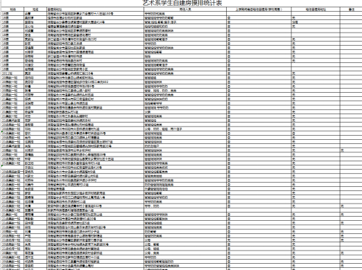 通过摸排全系学生校外租房及家庭自建房的情况,发现艺术系学生无一名学生在校期间有租住自建房的情况,但有108名学生在农村或城镇与父母或其他监护人生活在自建房,艺术系积极准备“远离危楼”相关知识,通过网站搜集了近年来的国内危房坍塌的案例,重点整理了涉及到湖南的事件,借鉴《长沙居民自建房安全隐患大排查大整治大宣传》的相关宣传资料,班主任、辅导员老师与全体同学共同学习“危房坍塌“各项防护方式,本着“危房不住人,人不住危房”的原则,着重讨论如何识别和远离危房,如何避免被危房掩埋,不幸被掩埋后如何求生等一系列应急常识,同时也对大家的日常校园生活中一些不利于保护自身安全的行为提出建议,另外艺术系还积极配合保卫处、后勤财务处、学工处、教务处等部门对艺术系所使用的教育教学场地进行地毯式的排查整改,确保安全。