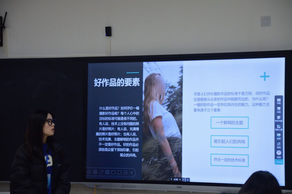 随后,摄影部部长胡嘉欣介绍了新闻稿图片的拍摄方式和格式要求,她提到,“一张好的图片的呈现,离不开对工具的灵活运用。”通过图片的对比🧧,生动具体地分析相机的特性及性能🥿。也描述了各种构图法,为同学们提供更好的灵感🉑,同时工具不仅仅只是相机等设备,还需要学习后期美化,将图片进行精修调色,更完美的呈现🫷。