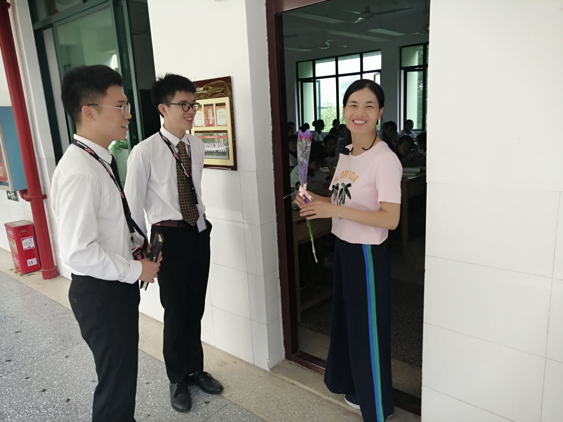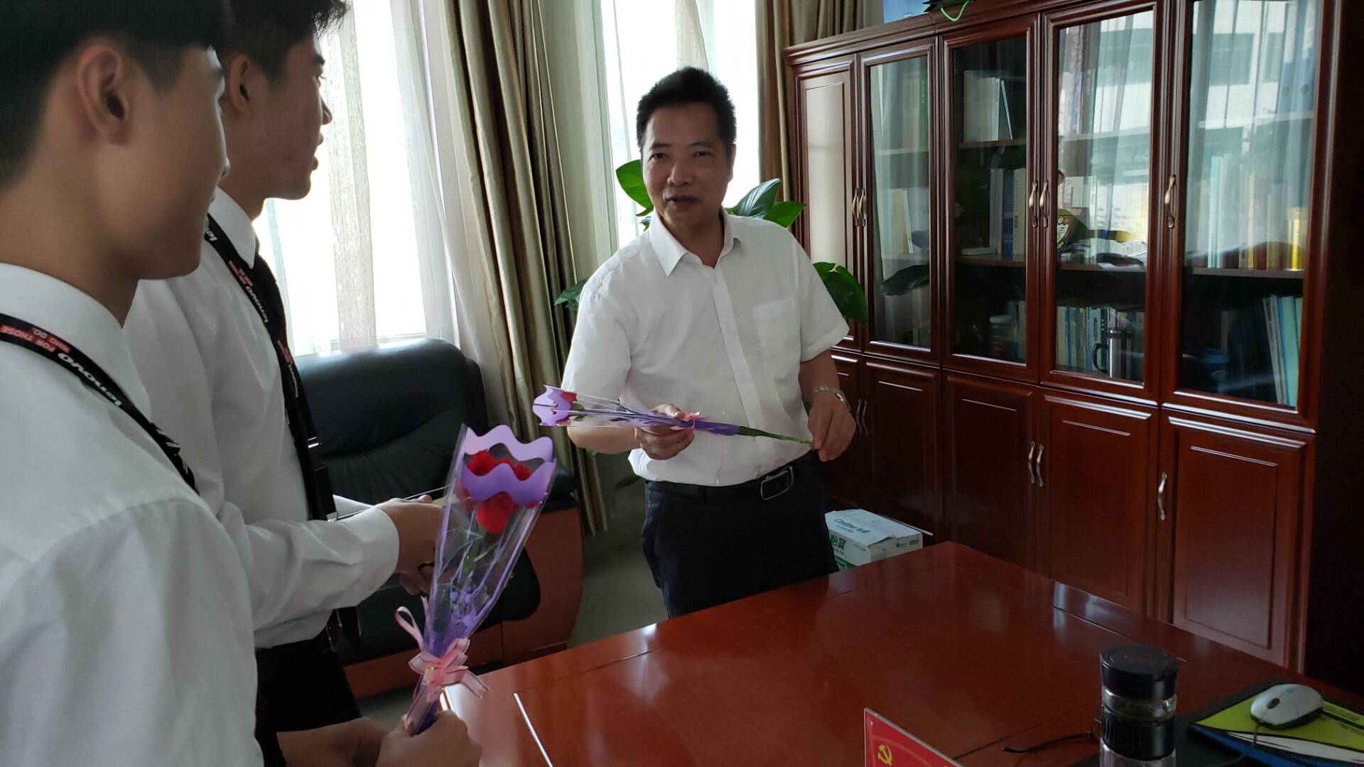 向老师们送花
