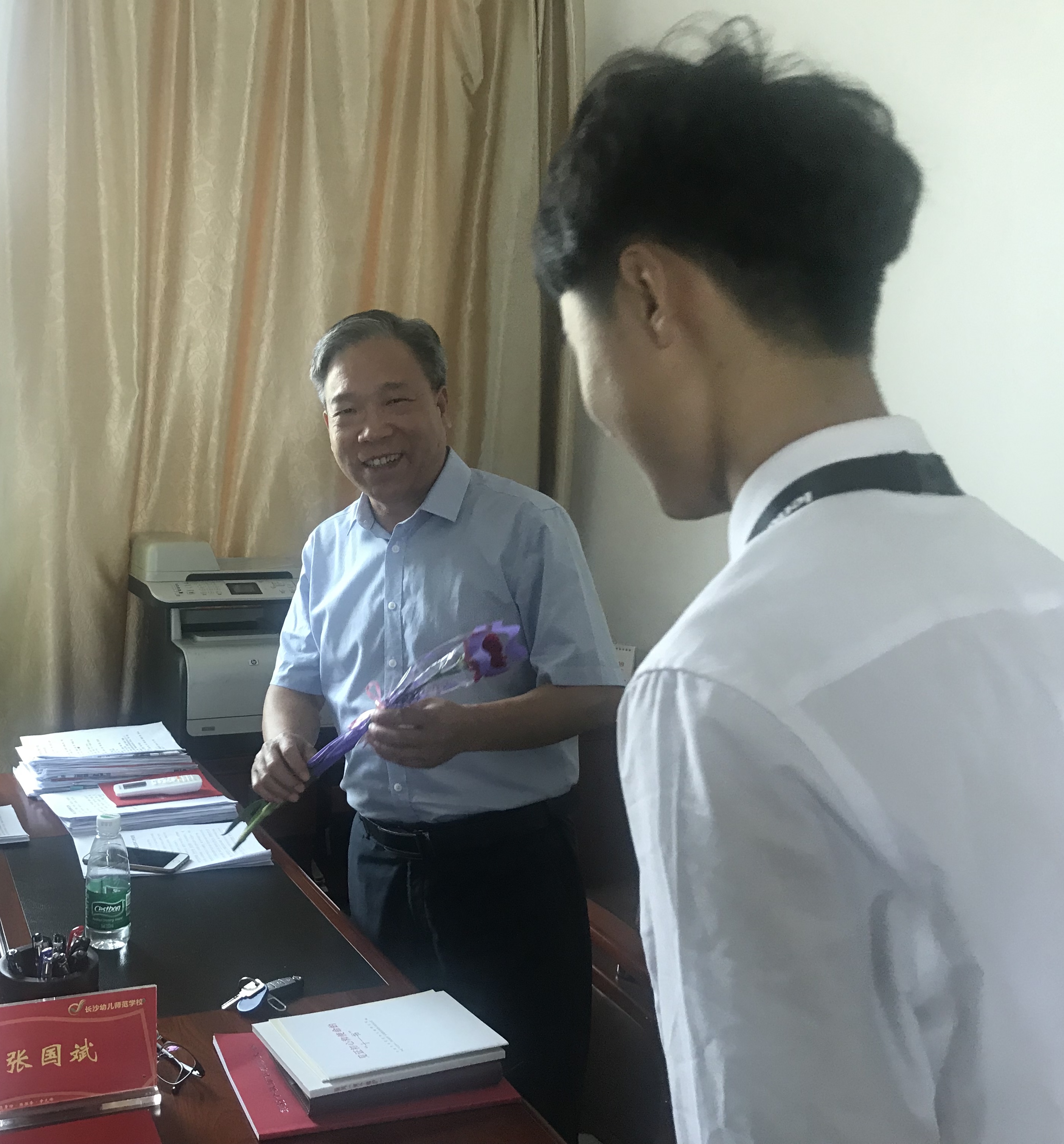 为郭正良校长送花