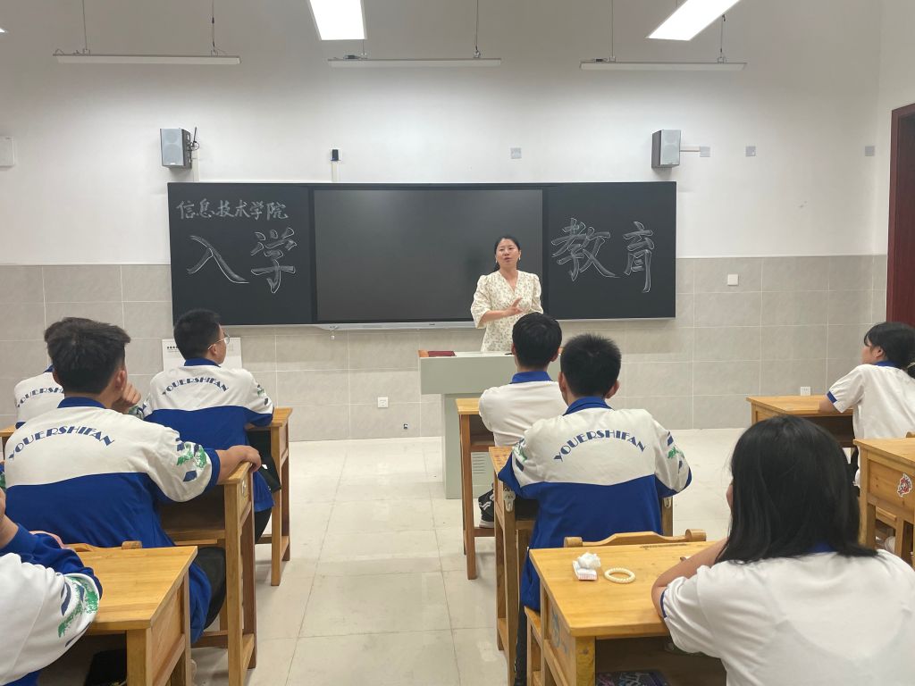 2022年9月26日晚上7👨‍👩‍👦‍👦🔺:00🪶,信息技术学院在技馨楼502召开新学期入学教育大会🍷,本次会议由信息技术学院副院长王潇翔主持,信息技术学院院长吴佳蒂、党总支书记李科💁‍♀️、院部陈雯婧和张德健老师、黄丽芬和陈思佳两位班主任老师以及全体中专部的学生参加本次会议🤹🏿‍♀️,同时大专班方祥老师组织学生在班级召开班级会议。