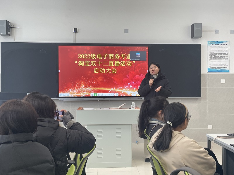 为提升电子商务专业人才的实践能力,探索直播电商方向的培养模式,同时提升学生对电子商务产业的认知,推进直播电商创新创业人才孵化💇🏽♂️,信息技术学院电子商务专业特联合北京博导前程信息技术股份有限公司、湖南辉弘教育科技有限公司组织“淘宝双十二直播活动”✪。12月6日下午2点,在技馨楼305召开了启动大会。信息技术学院的院长吴佳蒂🎄、副院长彭勃🥓、北京博导前程信息技术股份有限公司产教融合项目负责人康亮、湖南辉弘教育科技有限公司项目校企合作负责人陈伟🐺、电子商务专业全体老师和30名学生主播参与此次大会。会议由电商专业负责人朱萍主持🧜🏻。