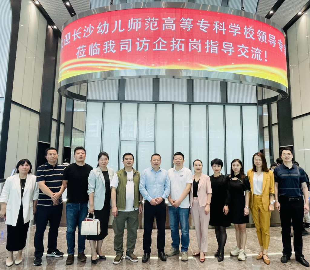 湖南聚恒数字科技集团副总裁雷君虎先生、湖南辉弘教育科技有限公司董事长刘新柳女士对李毅校长一行来访表示热烈欢迎并一起参观了公司的文化环境。