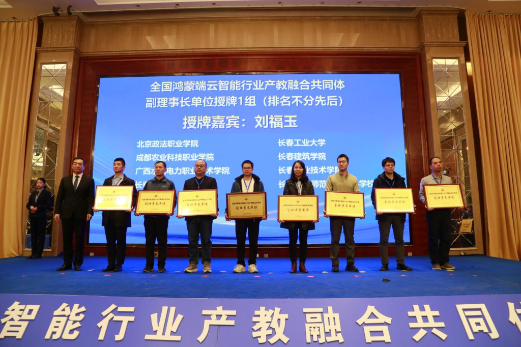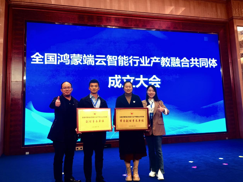 会上,神彩争霸8安卓下老版本被授予「全国鸿蒙端云智能行业产教融合共同体」常务副理事长单位,信息技术学院副院长王潇翔代表学校上台受牌。