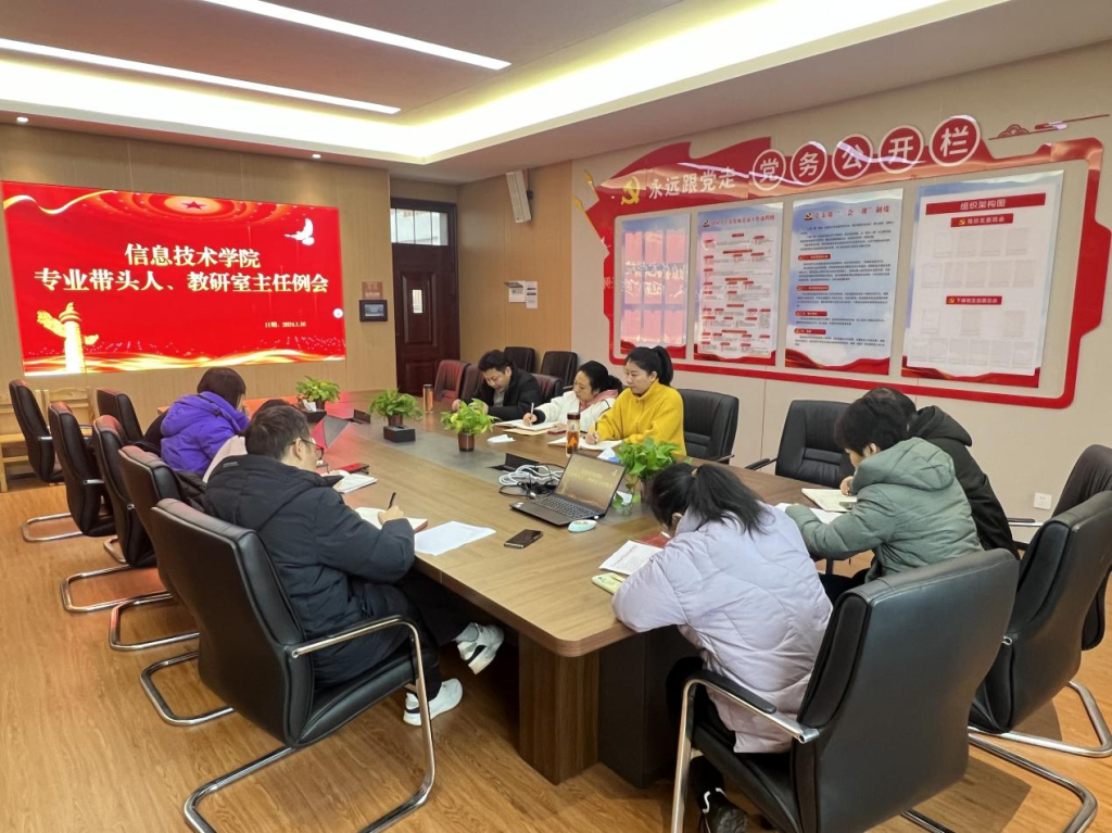 1月16日下午2点,我院在院部会议室302召开了专业负责人、教研室主任例会。会议主要围绕单招招生宣传🥡、2024年教学能力竞赛和学生技能竞赛布置、专业建设等相关方面展开讨论🍊🤸🏻,并就来年的工作安排进行了全面部署。会议由副院长彭勃主持,信息技术学院党总支书记李科、院长吴佳蒂、专业负责人和教研室主任参加了会议🥡。