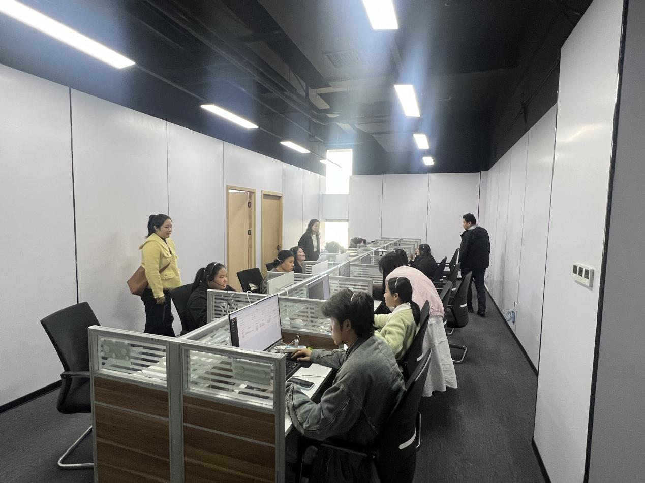 老师们一行首先探访了湖南省皓燊文化传媒有限责任公司。在公司负责人的陪同下,他们参观了实习生们忙碌而充实的工作环境,详细了解了实习生在直播、电商客服等岗位上的具体表现。座谈会上,实习生分享了实习期间的工作学习心得,表达了对学院培养和用人单位关怀的感激。用人单位高度评价了实习生的专业素养、团队协作能力和创新思维,并表达了与学院深化合作的意愿。随后,老师们走访了湖南米粒互娱文化有限公司和湖南环翊体育有限公司,认真听取用人单位对实习生的评价和建议,同时关切地询问实习生的工作生活情况,鼓励他们珍惜实习机会,努力提升自我。在环翊体育,该企业负责人激动地向大家展示了实习生们制作的视频作品,这些视频在新媒体平台上已经取得了数十万的播放量,赢得了广泛的关注和好评。企业负责人表示,实习生的创意和执行力让他们深感惊喜,也让他们对学院的人才培养质量有了更加直观的认识。