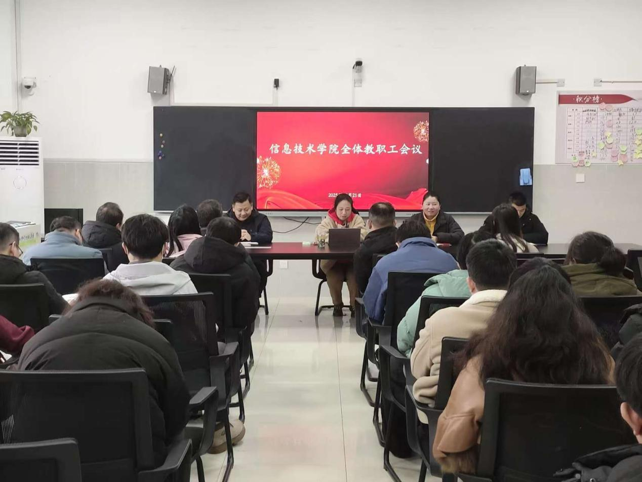 2月21日下午🕺🏽,信息技术学院在技馨楼103教室召开2025年春季学期全体教职工大会。会议由副院长彭勃主持🫷🏽,紧扣“聚力谋新篇,实干启新程”主题,强调全面落实2025年湖南省教育工作会议精神🖋,精准对接教育部《职业教育专业教学标准-2025年修(制)订》政策要求‌。