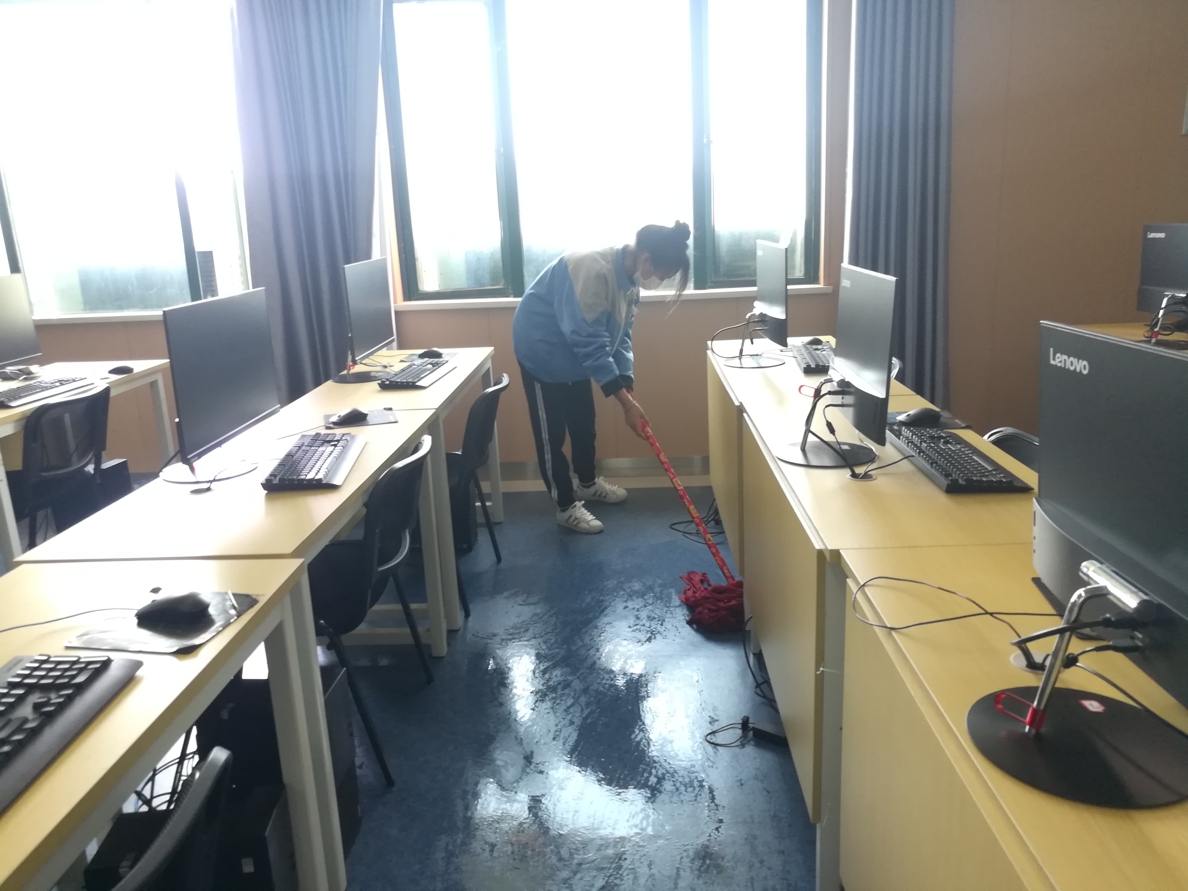教育技术系团委学生会开展打扫技馨楼实训场地志愿活动
