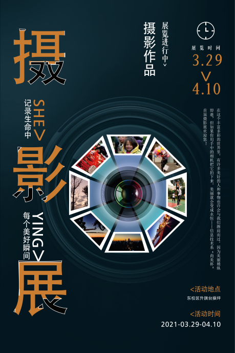 3月是摄影作品的展出阶段,经过数字媒体教研室老师的精心策展,数媒专业学生的辛苦付出,评选出的28幅获奖作品和平时《摄影摄像》课程学习当中的18幅优秀作品,于3月29日一同呈现在神彩争霸8安卓下老版本东校区广场上。