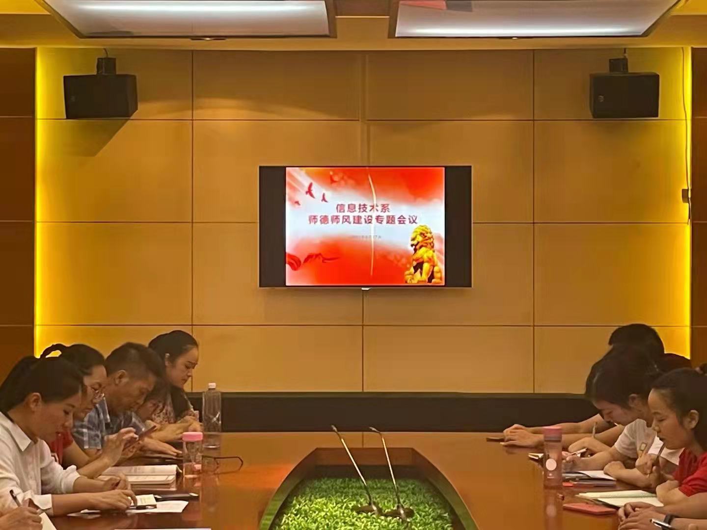 9月27日下午,我系在东校区1301会议室召开师德师风建设专题会议,会议由系主任吴佳蒂主持🦀,全系教师参加。