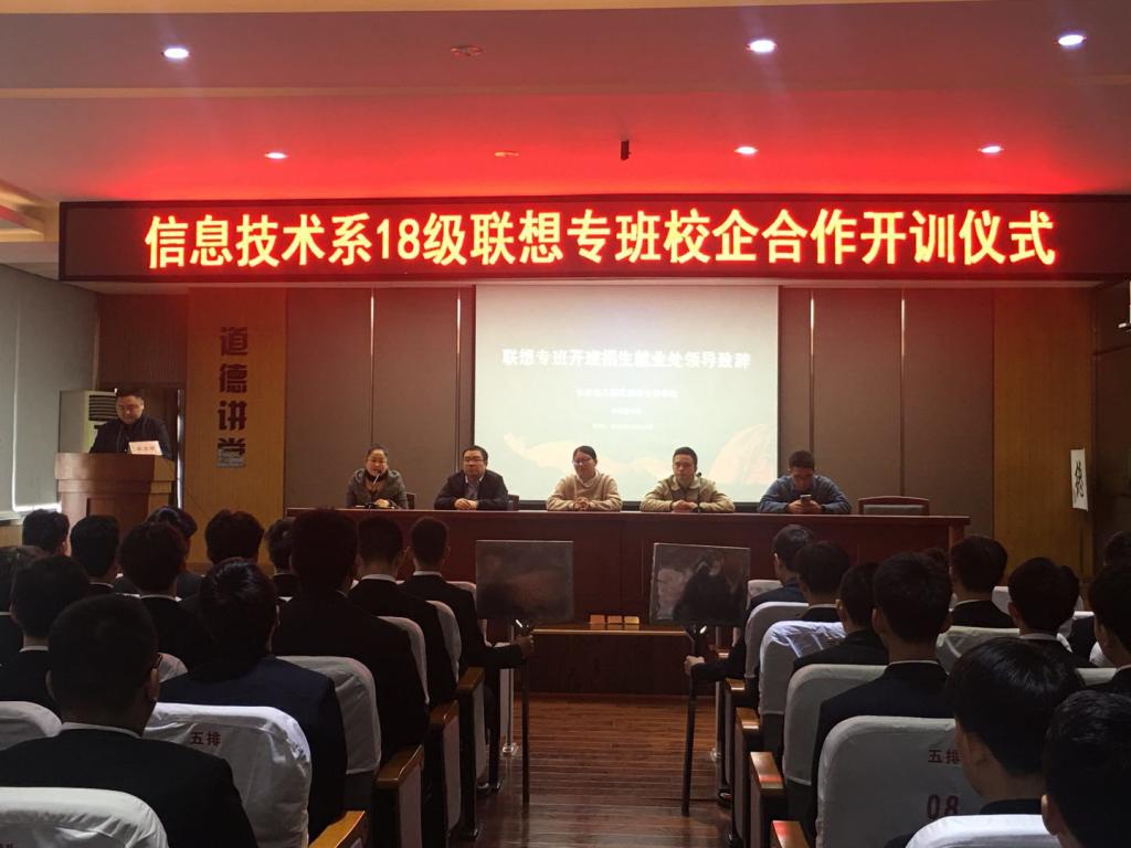 2020年10月19日上午🌕,我校信息技术系在东校区举行1813班联想专班开训仪式,即将开始为期2个月的联想工程师资格认证集训。联想售后服务经理王豪、联想高级讲师刘琨🔇,信息技术系吴佳蒂主任🧖🏿♀️🪣,现代教育技术中心段胜智主任,招生就业处刘丹副处长,教务处罗斌副处长🌈,联想项目组组长彭勃老师, 18级、19级🖐🎪、20级三个年级联想专班的班主任和学员参加开班仪式💈,开班仪式由1813班班主任田伟老师主持🎎🍏。