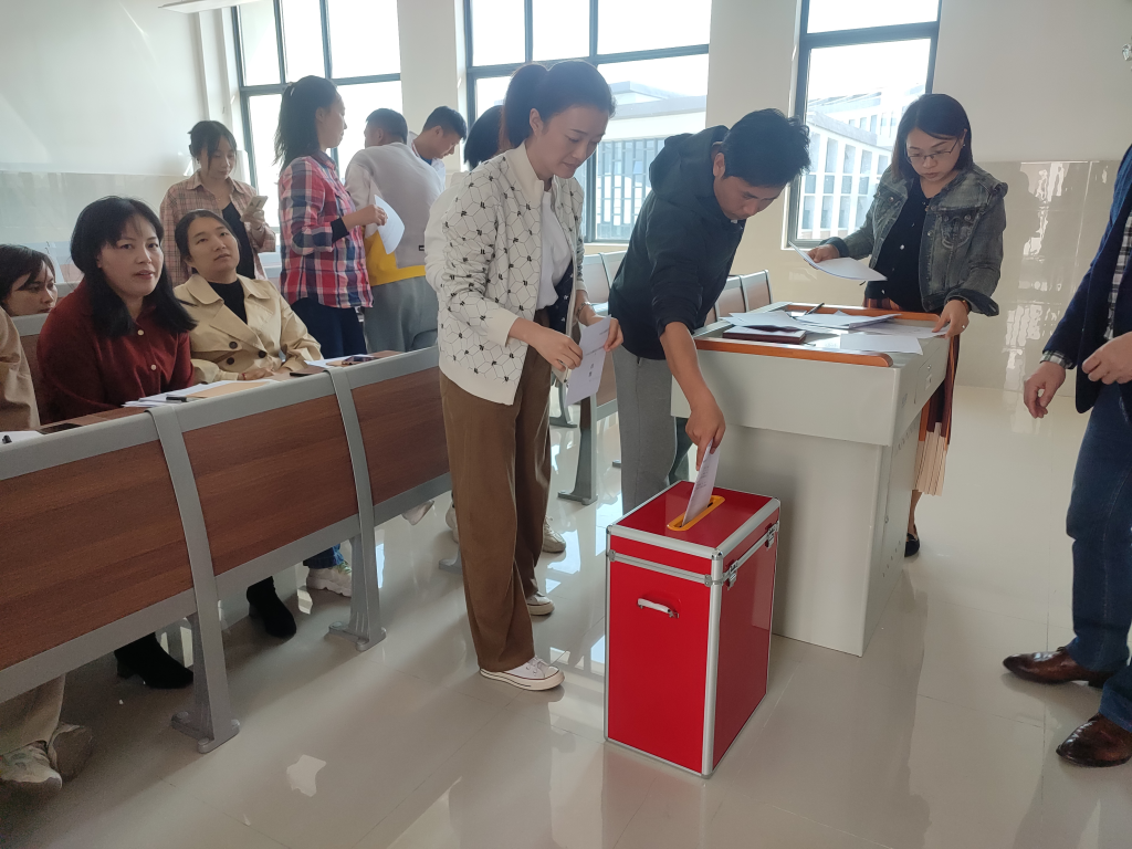会议由朱轶老师主持,首先通过学校基层党组织换届选举办法🛫,再由主持人向大会报告实到党员人数,公共课部党支部应到党员人数23人,实到正式党员21人,符合换届改选的有关规定。
