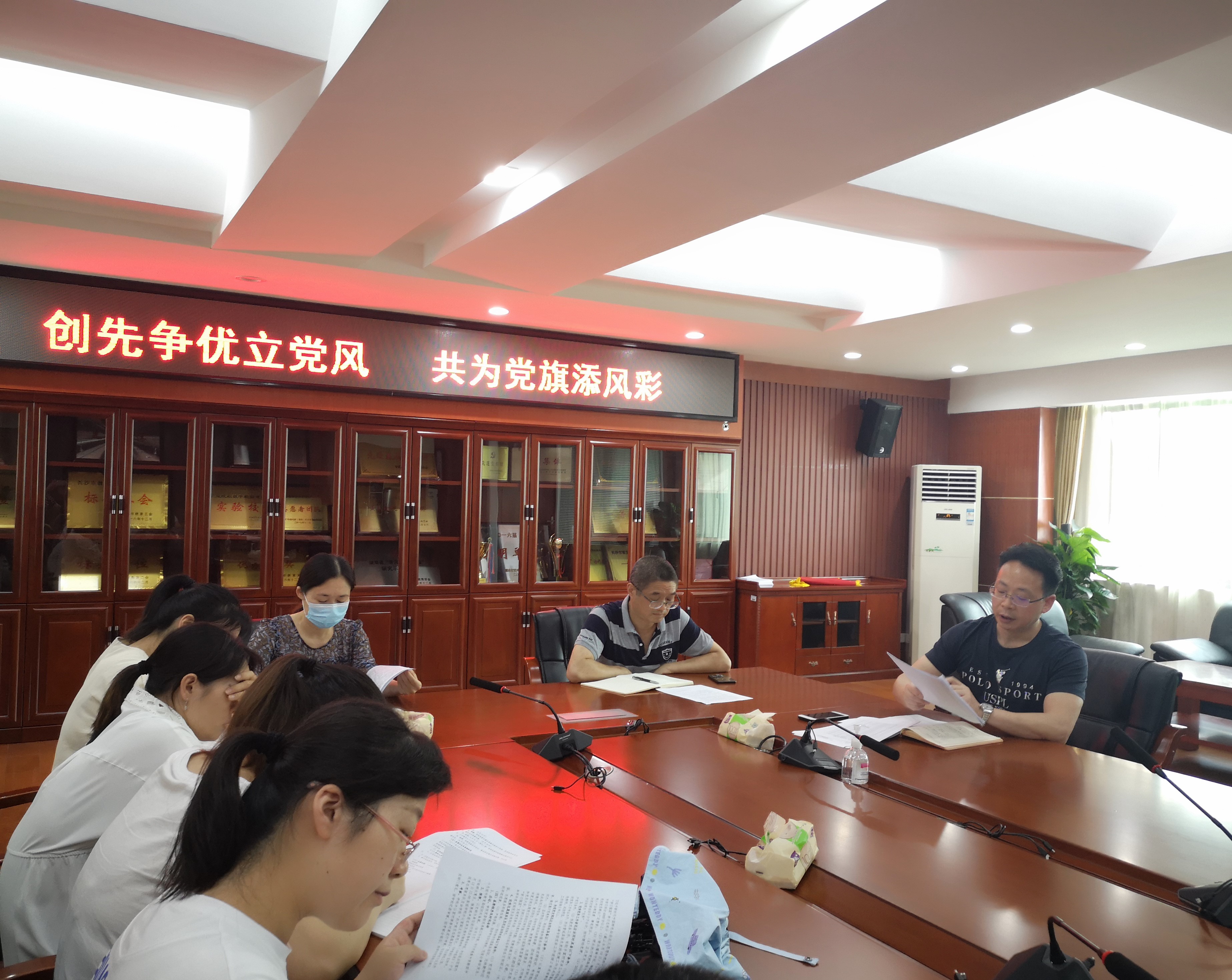 2020年6月15日我校公共课党支部在道馨楼广益厅召开“争优创先立党风,共为党旗添风采”主题党日活动,会议由支部书记张胜春主持。