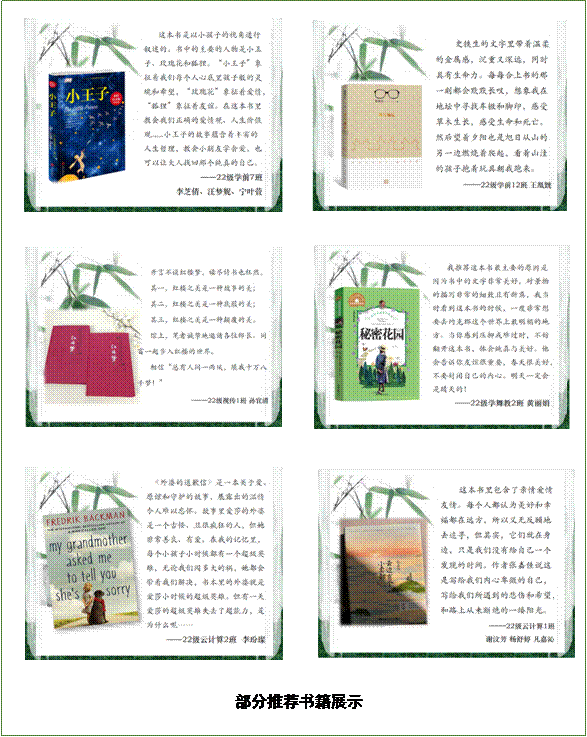 语文教研室全体教师直面现代学生浅阅读现状,以课堂教学为切入点,结合课内引领学生进行课外经典阅读。课堂上,老师们带领学生赏析美文佳作;课后,指导学生们结合阅读经验,撰写推荐词,将自己的阅读感受写成文字,希望吸引更多的同学加入到读书行动中来。两周时间里,语文教研室共收到了学生的佳作推荐200多份。学生们的推荐词或阐述自己对作品内容理解和认识,或解读作品中的价值,或介绍作品对自己的积极影响影响,或谈作品的精美文辞和鲜明人物……推荐的作品类型十分丰富,涵盖了文学经典、人物传记、历史文化、职场之道、网文佳作等。