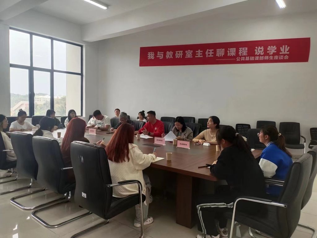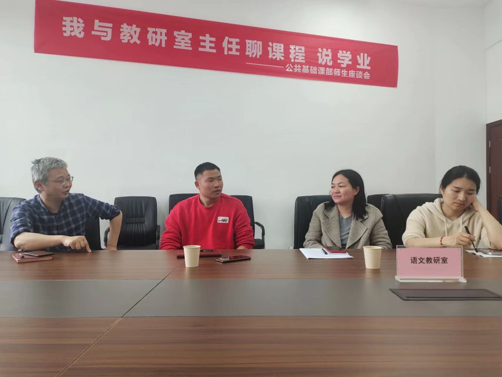 为全面了解公共文化课教学运行情况,加强教学管理、规范教学秩序、提高教学质量,4月11日下午,公共基础课部在德馨楼430会议室召开了主题为“我与教研室主任聊课程 说学业”的师生教学座谈会,公共基础课部副主任罗星、各教研室主任、22级各班学生代表参会,会议由罗星主持。