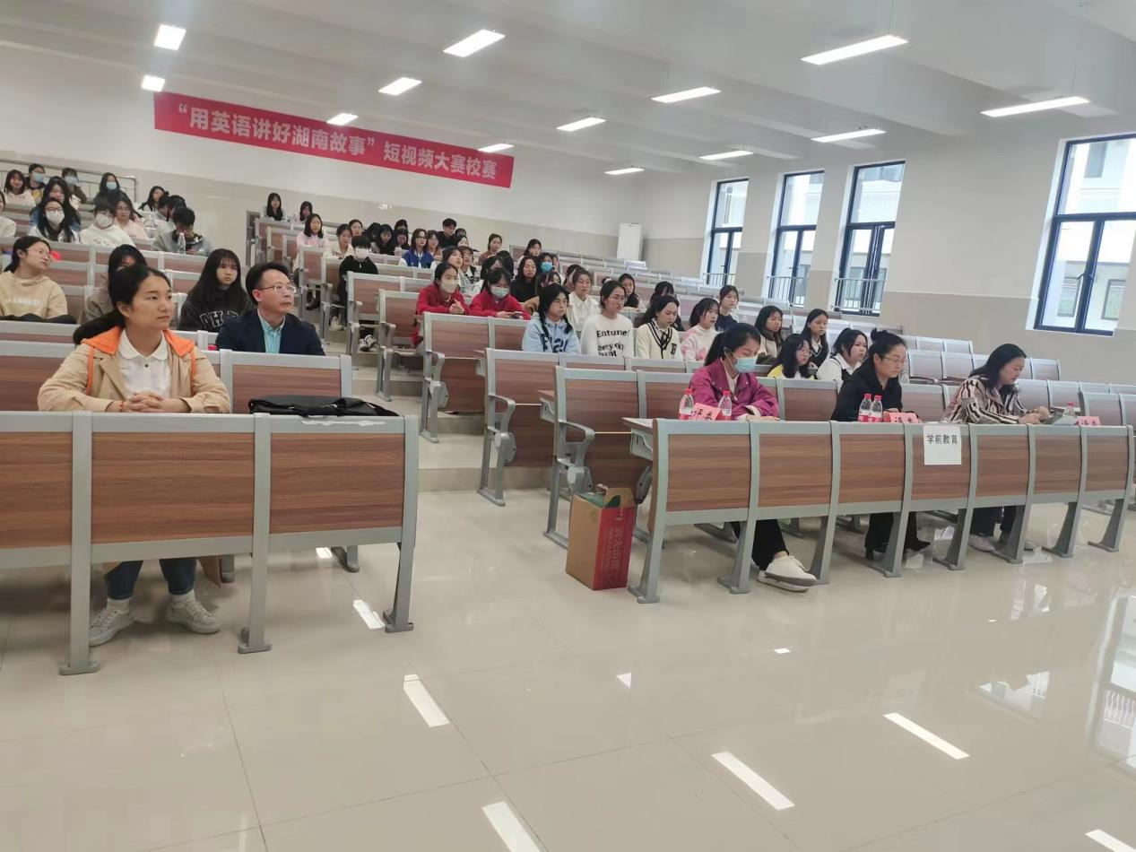 为深入学习贯彻习近平新时代中国特色社会主义思想和党的二十大精神,锤炼新时代大学生的创新思维和外语应用能力,切实加强湖湘文化的国际传播,向世界讲好湖南故事🧗♀️。神彩争霸8安卓下老版本公共基础课部于5月12日在德馨楼122教室举行“用英语讲好湖南故事”校赛现场赛,刘丹🏄🏻♂️、邓玉峰𓀙、龙蝉娟三位教师担任本次活动的评委🈵,公共基础课部张胜春主任、全体英语教师到场观赛。