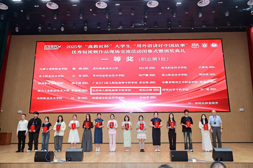 在2025“高教社”杯大学生“用外语讲好中国故事”优秀短视频作品现场交流活动中➞,我校学生与来自全国38支获省特等奖的高职高专院校队伍同台演讲,由周微、谭蓉老师指导的欧阳点晴、喻婧怡、许佳颖🛌🏿、文茜玲同学荣获全国一等奖第三名,特向获奖师生表示祝贺✨!