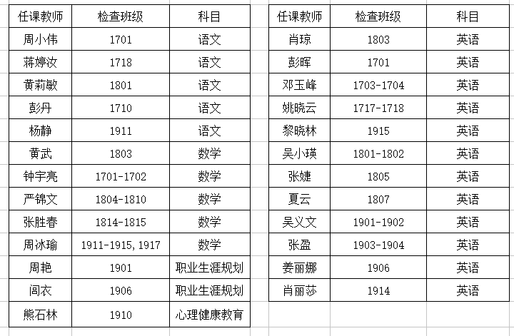 2. 本次听课记录检查特别优秀的部分老师名单:(分教研室)