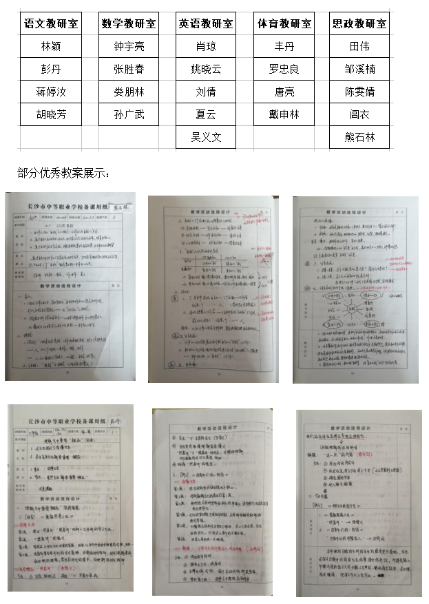2. 本次备课检查特别优秀的部分老师名单:(分教研室)
