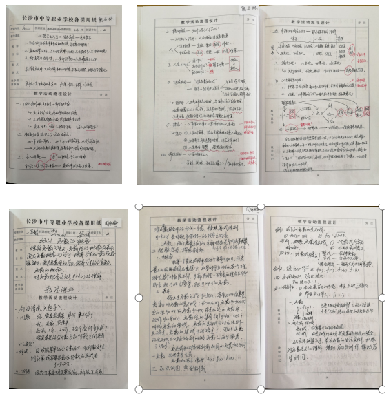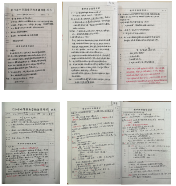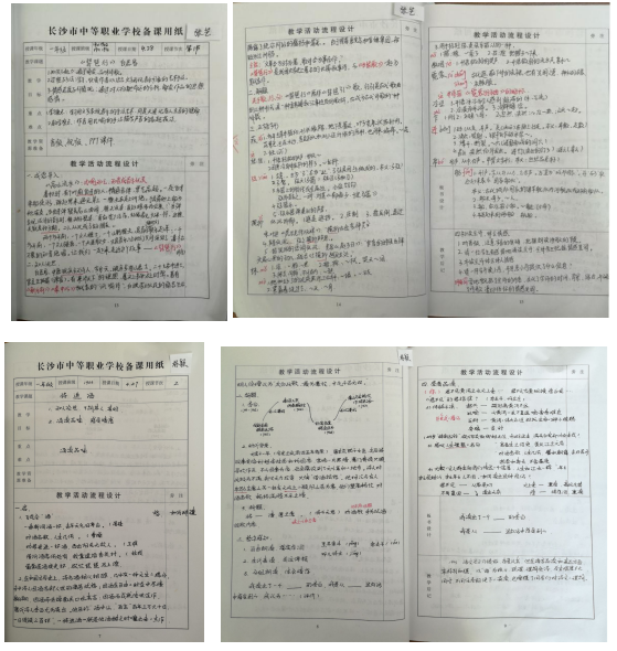 (2)所有教师教案都为手写教案,绝大多数教师教案备课要素齐全、字迹工整、内容详实,教案前面都附有详实的教学计划。优秀教案中呈现出教学活动流程设计环节齐全,条理清楚,重点和难点突出,图文并茂,部分教案能体现多媒体教学手段。