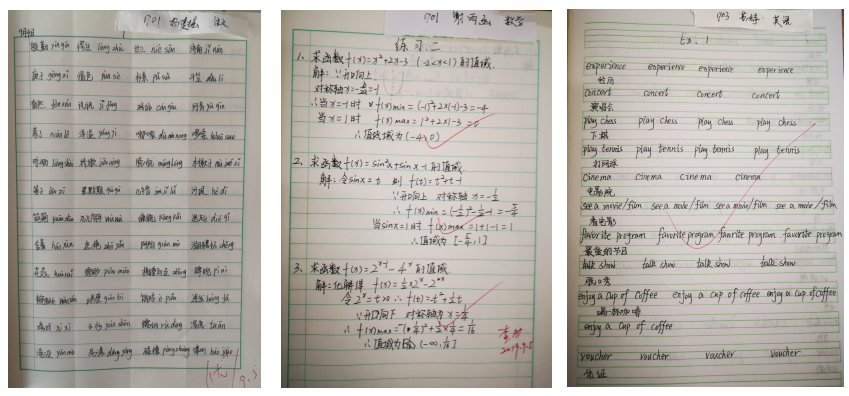 (3)有的作业批改过于简单就一个勾一个阅字,有个班级的作业有学生批改的痕迹;