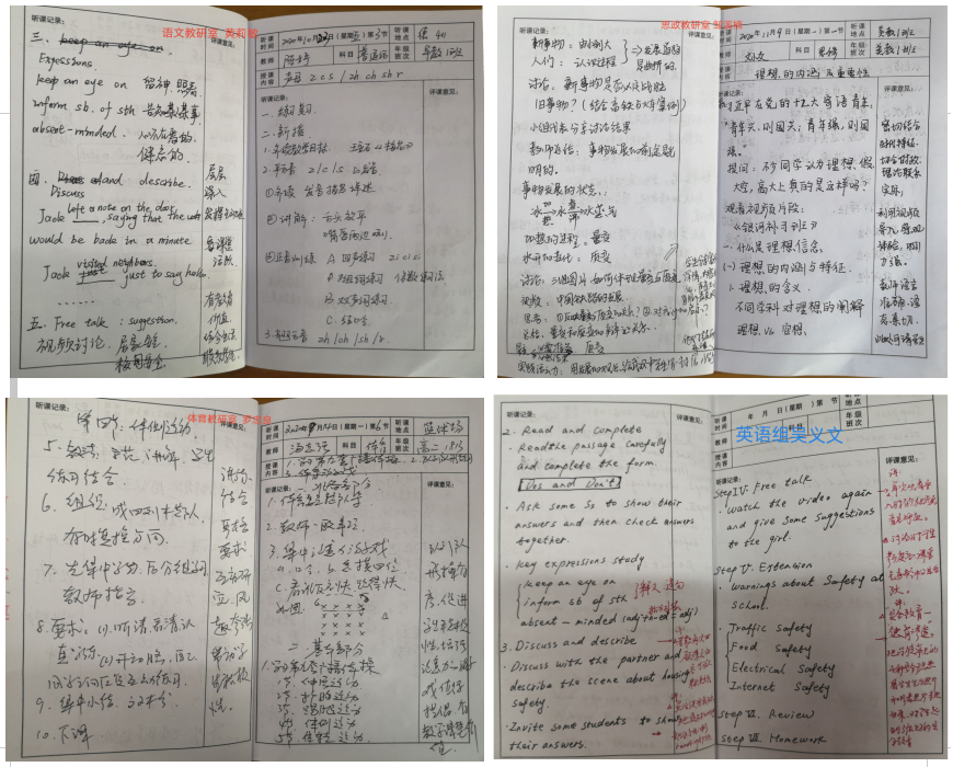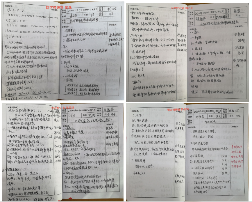 听课笔记整体比较好的教研室有语文教研室和思政教研室的年轻教师💿,笔记书写认真,要素齐全♘、教学反思深刻
