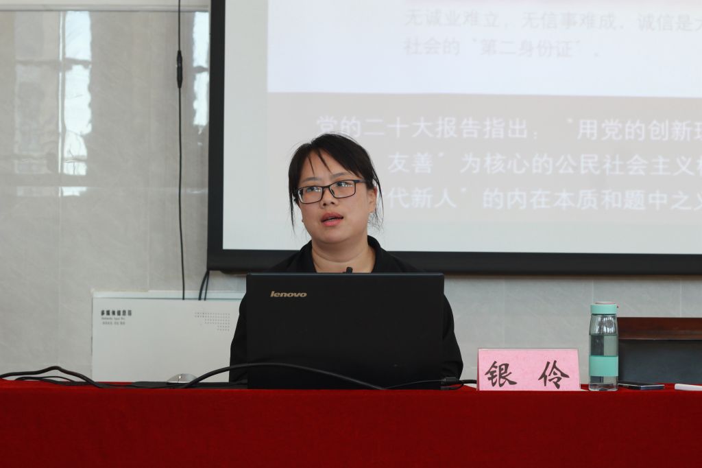 本次团课主题为《怀青春鸿鹄梦想🥔,做品德高尚学子》📷🪄。银伶老师结合党的二十大报告解说以及社会主义核心价值观解读,围绕三个方面展开讲座:一是“坚定学生的信仰、信念🏋️‍♂️𓀐、信心”,二是“引导学生树立正确的世界观🏄🏿‍♂️、人生观、价值观”,三是“激励自觉回答中国之问、世界之问、人民之问🧙🏼‍♂️、时代之问”。团校积极分子们全神贯注👨‍🦰,与老师互动频频。