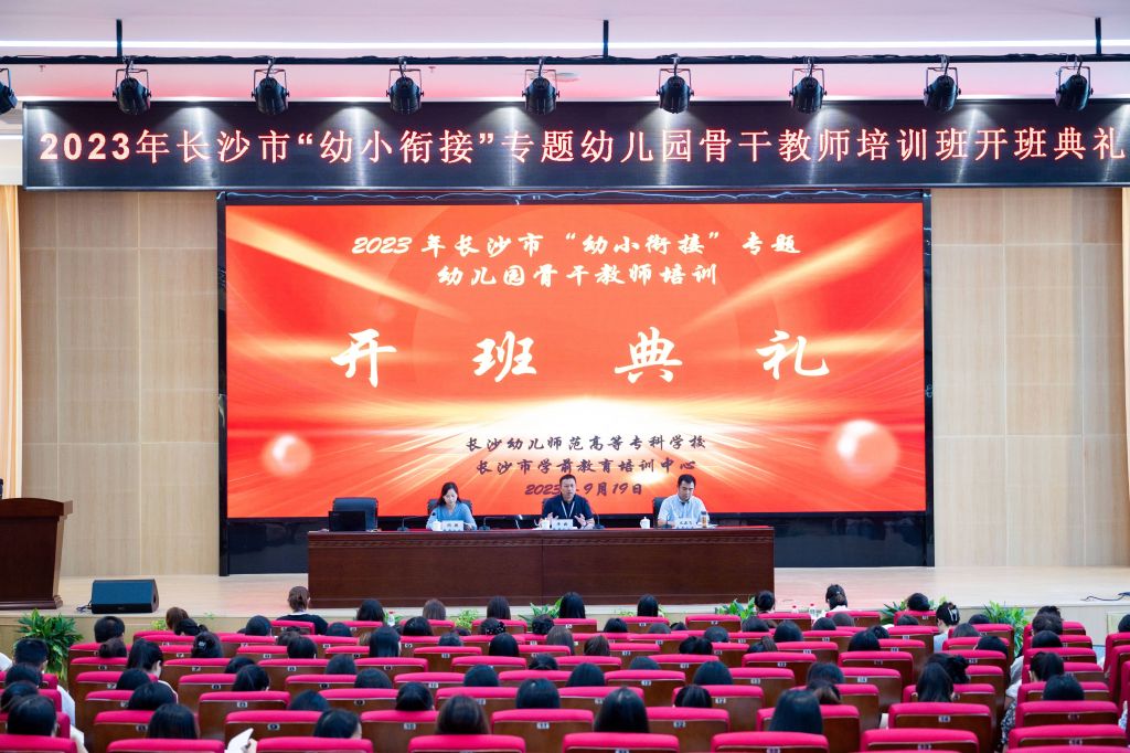 为进一步推进幼儿园与小学科学有效衔接,帮助儿童顺利实现从幼儿园到小学的平稳过渡,全面提高幼儿园保育教育质量,9月19日上午‼️,2023年长沙市“幼小衔接”专题幼儿园骨干教师培训班开班典礼在神彩争霸8安卓下老版本图书馆学术报告厅举行👨🏻🏭🧑🏻🎄。长沙幼师高专校长李毅⌚️🚮、继续教育与国际交流学院院长闵捷出席开班典礼↕️,典礼由长沙幼师高专副校长文孟飞主持👐🏿。