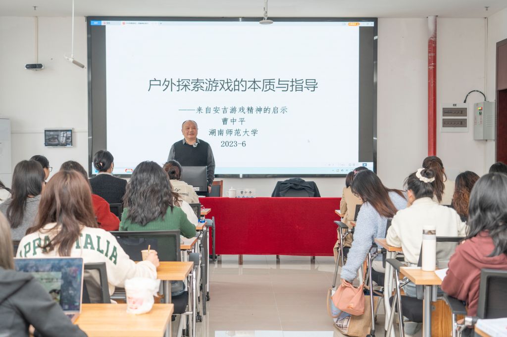 湖南师范大学教授曹中平以《户外探索游戏的本质与指导——来自安吉游戏精神的启示》为题,从心理学的角度讲解了游戏精神、安吉游戏精神的内涵以及游戏的创新精神,使学员对自主游戏的价值与实施有了更深刻的理解。