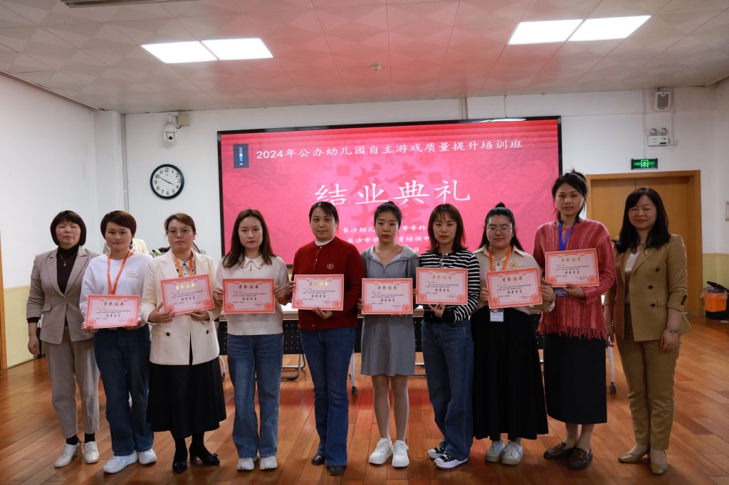 培训班班主任曹婷从“学习出勤、学习任务、班委服务”三方面通报了培训情况,并依据《2024年长沙市公办幼儿园自主游戏评价细则》评选出优秀学员15名、优秀团队1个。优秀学员代表长沙市开福区钱隆世家幼儿园保教主任熊姣立足课程学习内容分享了感悟与收获。