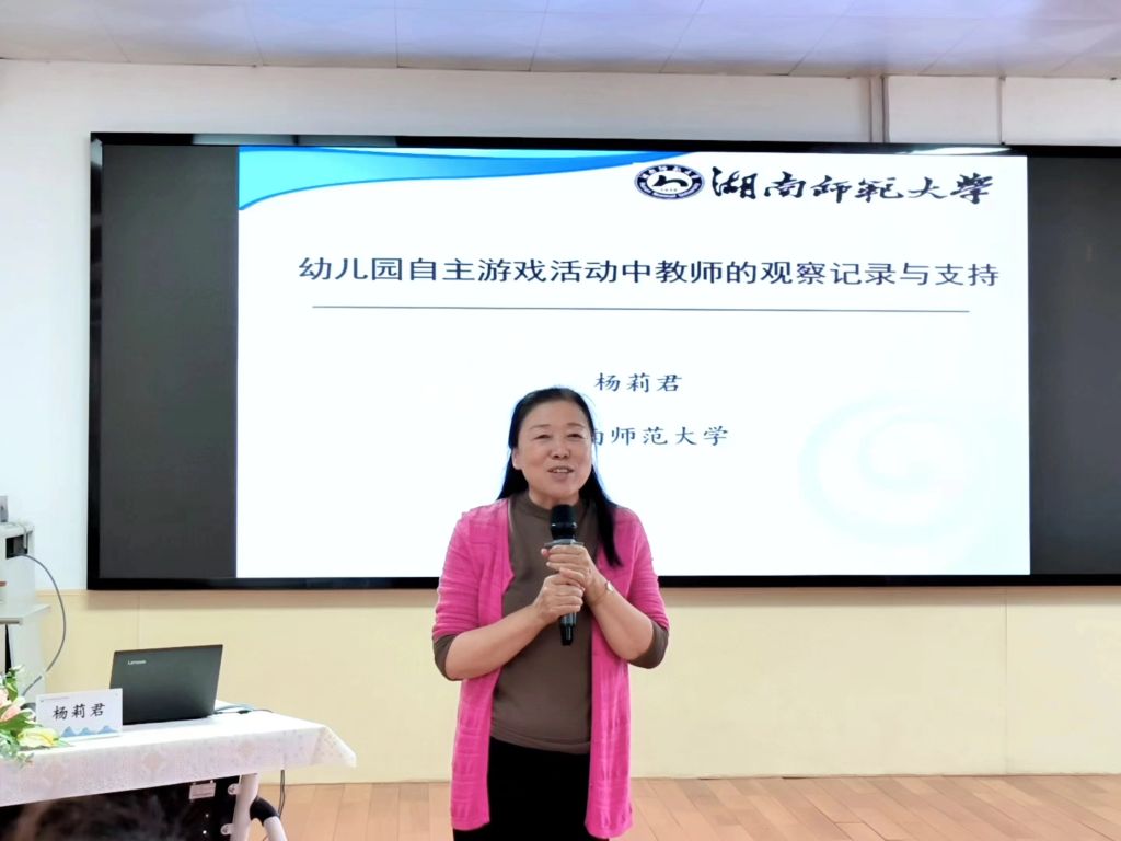湖南师范大学教授杨莉君以《幼儿园自主游戏中的教师观察记录与支持》为题,从“政策理念、教师观察记录解读、教师介入的时机与支持策略”三大板块引领学员树立科学的儿童观和教育观,并结合大量案例解读了教师有效观察儿童、解读儿童行为的方法策略。