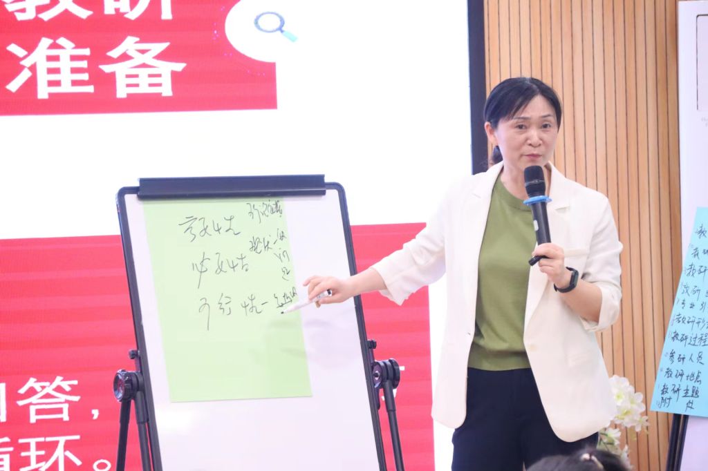 长沙市人民政府机关第三幼儿园副园长刘厚琴进行《园本教研活动的方案设计》现场教研活动。她以“园本教研方案撰写要素”为核心,通过现场调研明确学员方案撰写中的困惑和争议点,采用现场提问👷🏽、小组研讨等形式,帮助学员全面掌握园本教研活动方案设计方法。