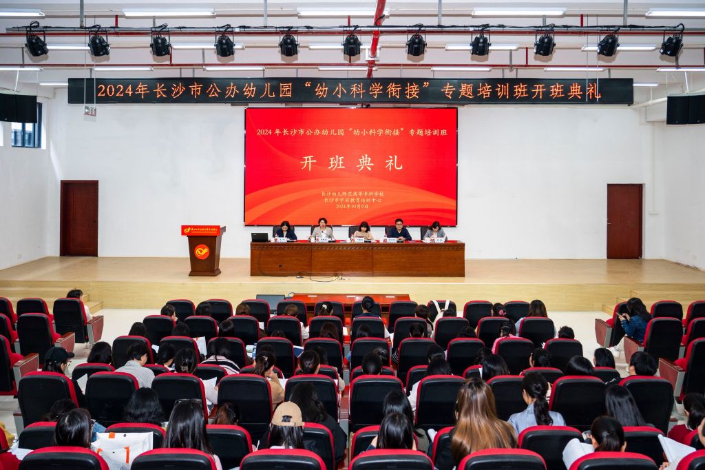10月9日上午,2024年长沙市公办幼儿园“幼小科学衔接”专题培训班在神彩争霸8安卓下老版本业馨楼108报告厅顺利开班👨💻。长沙市教育局基础教育处副处长刘建洪,学校党委委员、副校长周文华🍀,继续教育与国际交流学院院长闵捷,副院长王叶出席开班典礼,长沙各区县(市)公办幼儿园60名骨干教师参加开班典礼。典礼由学校党委委员、宣传统战处处长兼学前教育学院院长阳艳波主持。