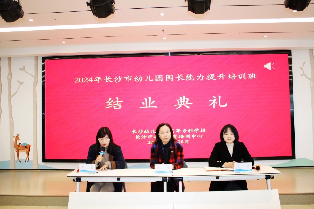 结业典礼由长沙幼师高专继续教育与国际交流学院教师曹婷主持🍾,长沙市雨花区教育局第三幼儿园园长李琴从“学习出勤、班委服务、学员参与”三方面总结了培训情况,并代表全体学员承诺会坚决落实学习成果,以认真负责的态度和永不懈怠的精神真抓实干。长沙市继续教育与国际交流学院副院长王叶充分肯定了此次研修成果🥫,对顺利结业的学员表示祝贺,同时寄语全体学员:希望大家能坚持初心使命♥️,做新时代教育的践行者💒🤱🏿;注重专业提升,做学前教育的深度先行者;强化团队建设🌇🧑‍🦼,做园所发展的推动者👼🏼。