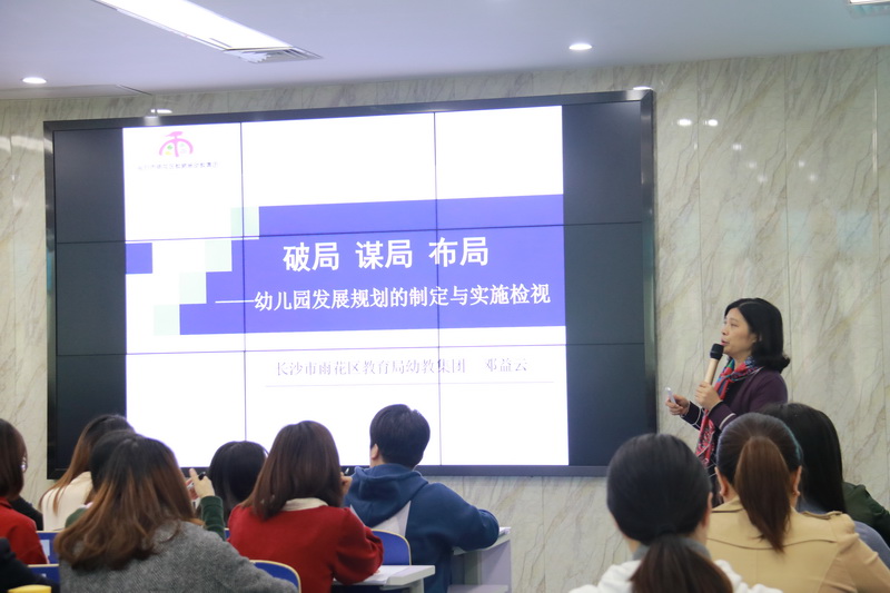 古语云“凡事预则立,不预则废”。幼儿园发展规划是幼儿园根据顶层设计,结合园所实际情况,举全园之力,确定或完善园所办园方向和发展目标,并制定相应的行动计划,挖掘自身优势,提高办园品质的一套完整策略。15日下午,雨花区幼教集团总园长邓益云从厘清相关概念、制定规划、实施检视三个维度,抽丝剥茧、层层剖析,带领大家探寻幼儿园发展规划之道。“破局”——认清规划计划之分、“谋局”——结合情况制定规划、“布局”——评价检视改进问题。最后邓益云以自己园所三年规划为例,从点到面,理论结合实际,让全体学员明确了制定切实可行规划的方法、践行园所发展规划的科学路径。