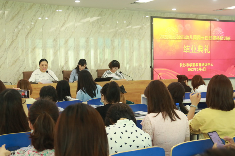 2022年6月6日上午,长沙市幼儿园园长任职资格培训总结提升暨结业典礼在业馨楼举行,经过一个月的培训学习,100名园长顺利结业。
