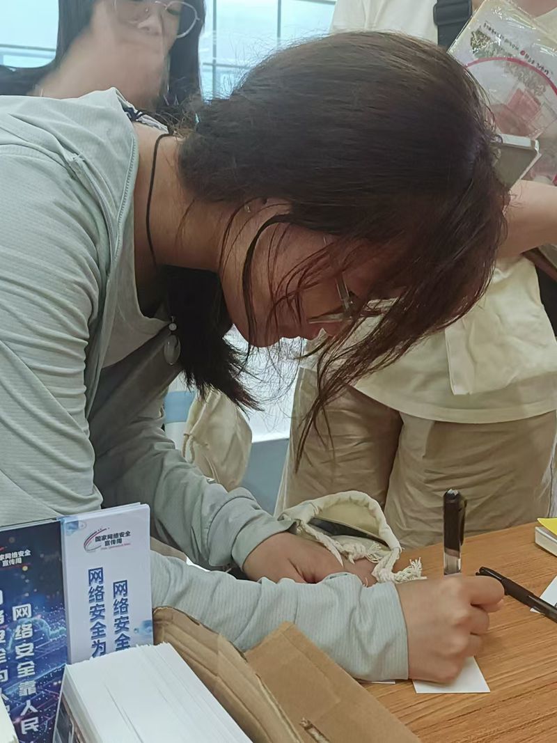 在校园宣传栏张贴网络安全周海报,在电子屏上播放网络安全宣传图片,营造网络安全学习氛围。9月10日(校园日),恰逢新生入学报到👩🏻‍🦽,派发网络安全宣传周书签,鼓励师生学习网络安全法律法规💂🏊🏿,切实强化网络安全风险防范意识⚫️,在校内掀起网络安全学习热潮🍞。