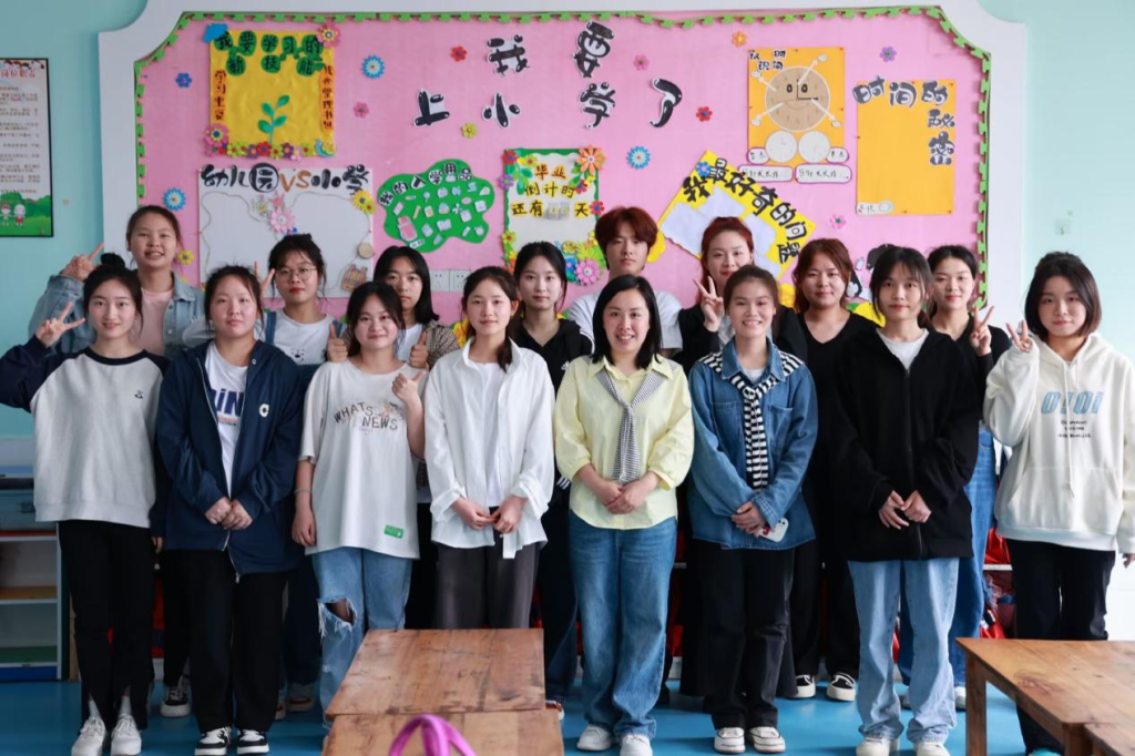 为全面贯彻落实《“十四五”学前教育发展提升行动计划》,提高农村学前教育的发展水平🧘,进一步实现“幼有所育”向“幼有优育”转变。2023年4月12日,我校学前教育学院第一党支部带领21级学前8班全体学生赴宁乡市娃哈哈幼儿园🗻,开展了一场送活动✹、送环创⚫️🪵、送讲座“三送活动”。