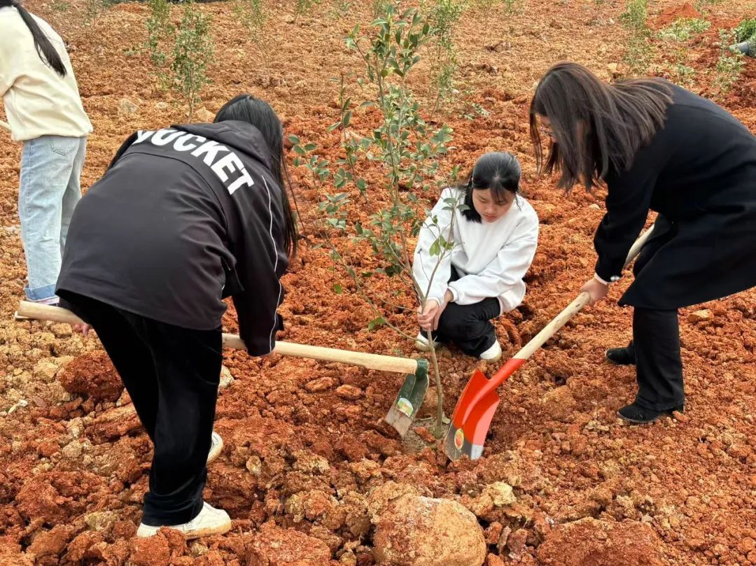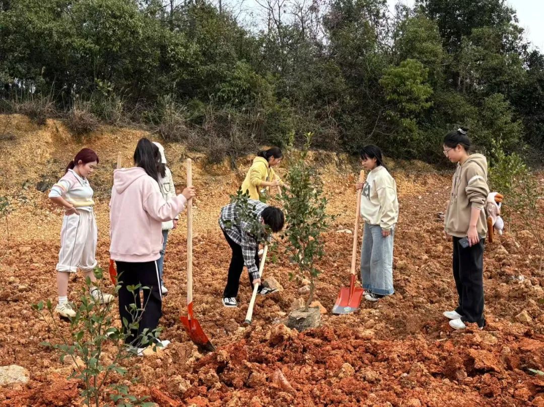 活动现场✨🪨,师生热情高涨🤹🏼,挥锹铲土、扶苗培土🆗、提水浇灌、分工协作、默契配合。经过两个多小时的辛勤劳动,共栽种油茶等树苗20余株🧑🏿🌾。新栽的树苗整齐排列在村道两侧,为初春的乡村增添勃勃生机。