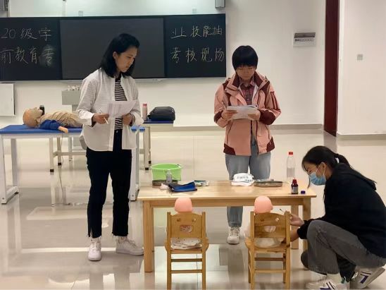 本次技能抽查严格按照2020级学前教育专业技能考核标准与题库实施,考核内容包括保育技能模块和教育技能模块,保育技能模块包括幼儿生活活动组织🐕‍🦺、幼儿园安全救护、幼儿园班级卫生消毒三大项目,共设置3个考场。教育技能包括幼儿园教育活动设计与实施👩🏻‍🔧、幼儿园游戏活动设计与指导♒️、幼儿园环境创设三大项目🫱🏻,共设置8个考场。考核项目和模块按照随机抽取的方式进行👨🏿‍⚖️。各位评委老师准时到达考场📍,认真监考,严格按照评分标准进行评分,考核结束后就考生的表现进行现场点评。