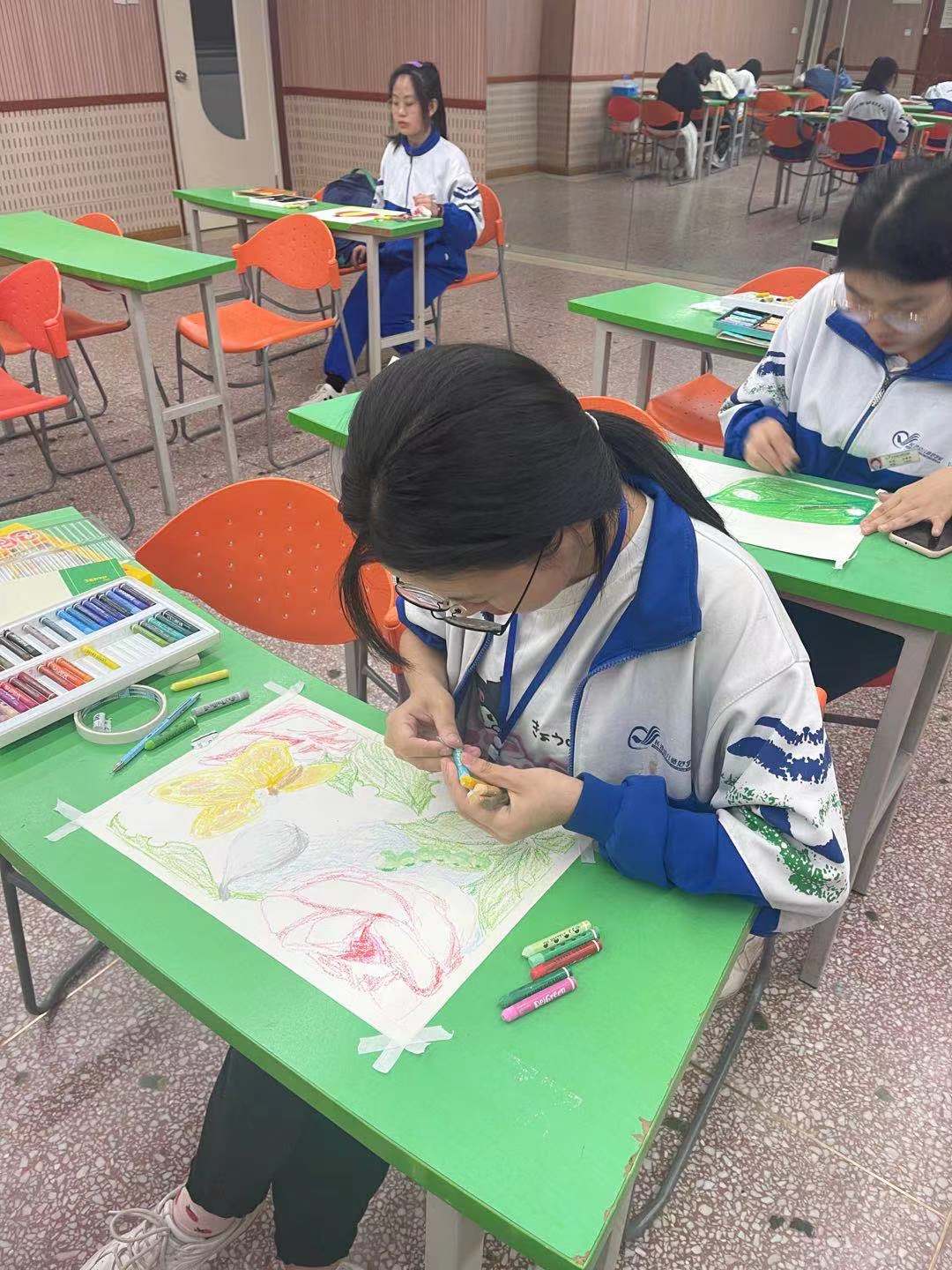 比赛以命题画形式进行,初赛题目为《夏天来了》🌿,学生在规定的时间内将作品交至美术教研室,通过4位评委老师的统一打分,选出最终参与决赛名单。决赛题目则通过现场抽签方式选取🕵️‍♂️,题目为《昆虫一家》,学生需在30分钟之内用油画棒完成命题画创作📄🦹🏼,考验的是学生合理运用绘画技巧进行命题作画的能力、油画棒绘画的基本知识和技能以及现场的创作能力。