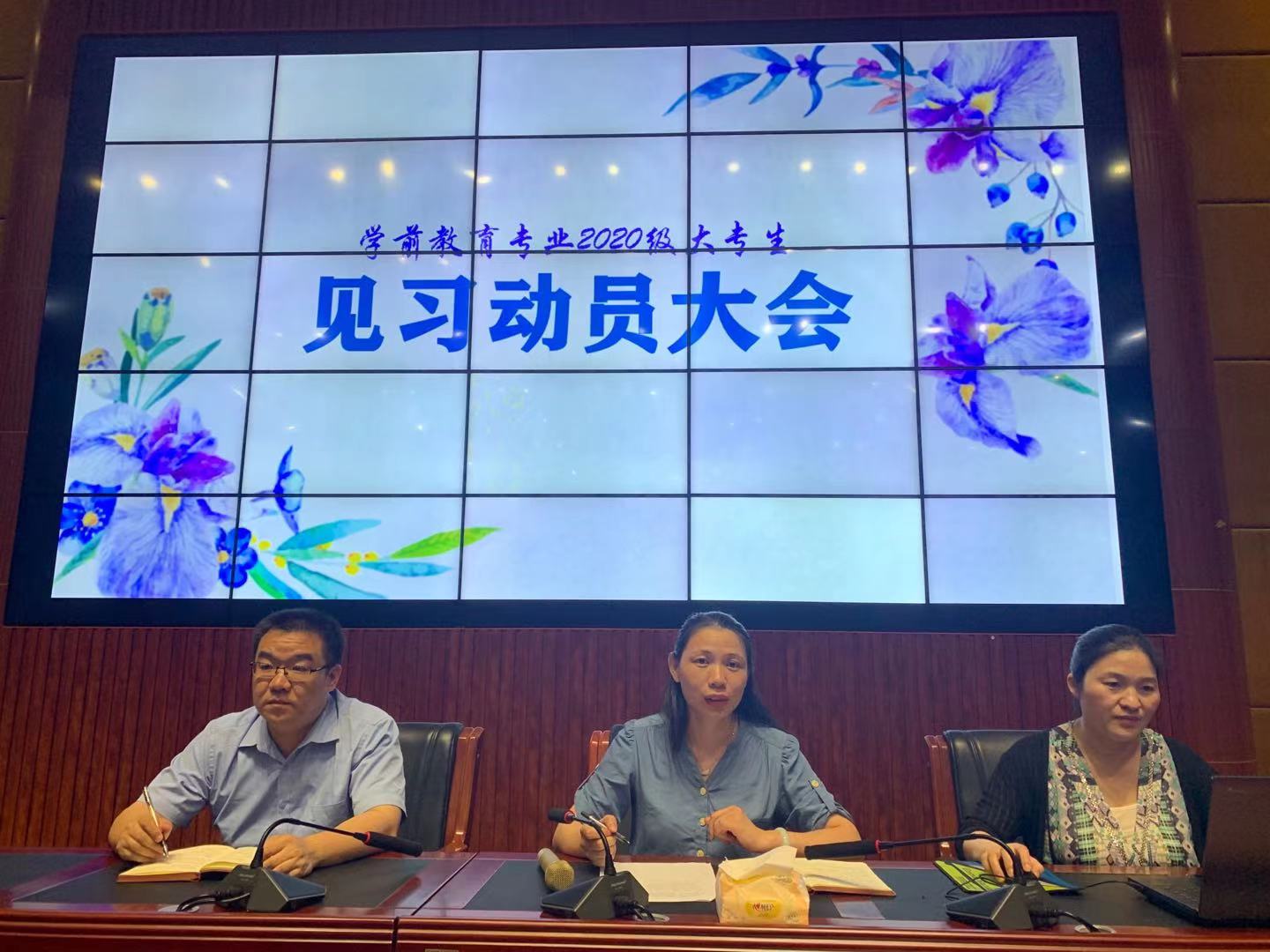 为提高学前教育专业师范生的保教能力和综合素质6️⃣,加深同学们对学前教育专业的认知度和认同感👏🏻,根据人才培养方案和课程设置安排,我系组织2020级三年制大专生开展为期一周的见习活动。为确保见习活动顺利开展,取得预期效果🎰👮🏼,6月9日晚,我系在汇智厅召开教育见习动员会。学前教育系系主任阳艳波、教务处副处长罗斌、课程群负责人陈郁、各班辅导员及学前教育系2020级全体大专生参加了此次会议。